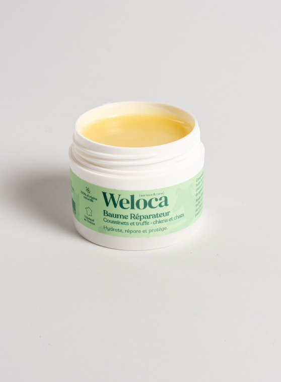 Ce baume ultra nourrissant, protecteur et régénérant répare, protège, hydrate et favorise la cicatrisation. Il est idéal pour traiter divers problèmes tels que les coussinets secs, fissurés, craquelés ou douloureux, ainsi que l'hyperkératose et les irritations causées par les éléments (froid, glace, vent, sel, sable, etc.). Il est également efficace contre les brûlures, coupures, piqûres et réactions allergiques. Convient aussi pour l'entretien de la truffe. Sa grande contenance de 50 ml vous permettra d'en profiter toute l'année.