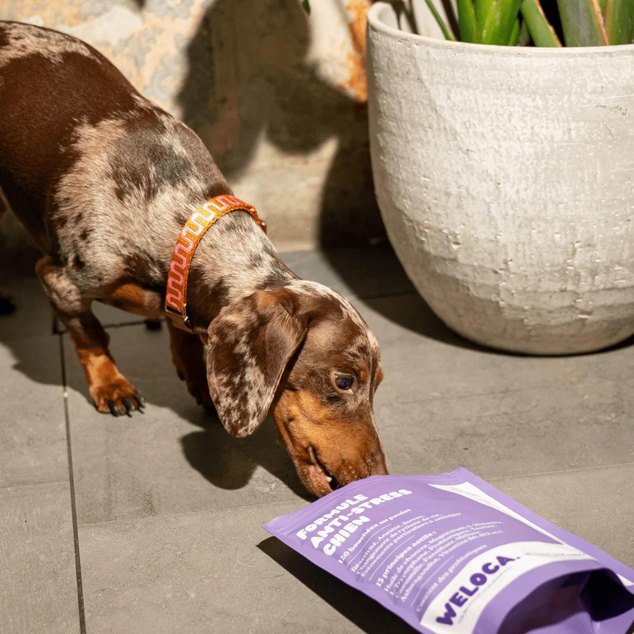 Votre chien est stressé, anxieux, réactif ? Ou vous souhaitez préparer un événement particulier comme un déménagement, un voyage en voiture ou en avion, ou l’arrivée d’un nouveau membre dans la famille ? La formule Anti-stress pour chien de Weloca, conçue pour apaiser durablement, est la solution idéale !